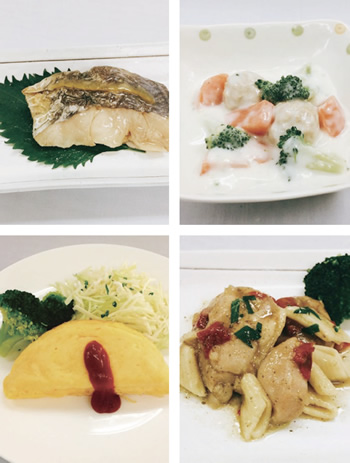 塩分:主菜1.1g 前後、副菜0.8g 前後(100g 当たり)を目安に製造しております。
